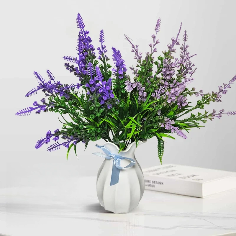 7-Stem Artificial Lavender Cross-Border Trade Bionic Fern Artificial Flower Bouquet Home Decor Plastic Plants Greenery