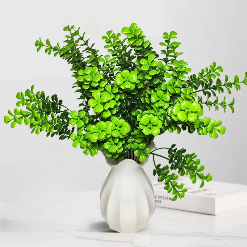 HomeArtificial GreeneryCross-border 5-head 15-branch Milan grass artificial green plant Milan aquatic plant bundle indoor decoration artificial soft rubber fake flower arrangement