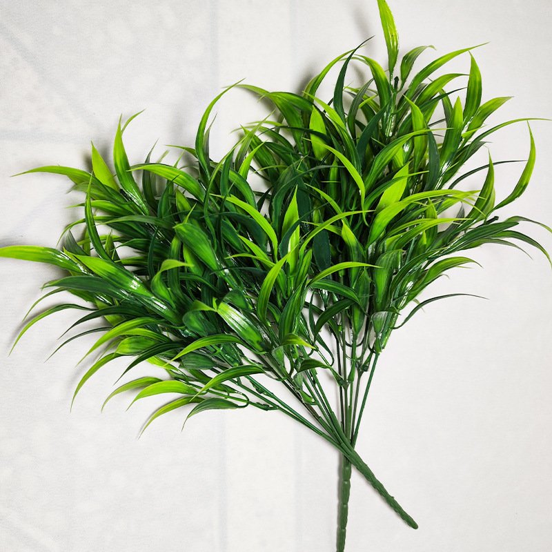 HomeArtificial GreeneryCross-border 5-Head 25-Branch Bamboo Leaf Grass Artificial Green Plants Lucky Bamboo Water Plants Bundle Indoor Decor Artificial Soft Gel Fake Flowers