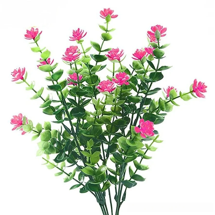 Cross-border 7-prong eucalyptus tea rose artificial flowers, synthetic plants, plastic imitation flowers Artificial flowers, in stock