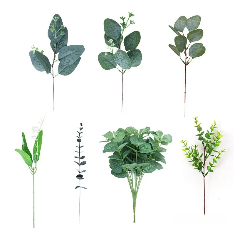 Cross-border Single-Stem Artificial Eucalyptus Leaf Money Plant Imitation Artificial Flower Home Decor Single-Stem Arrangement Eucalyptus Leaf Artificial Greenery