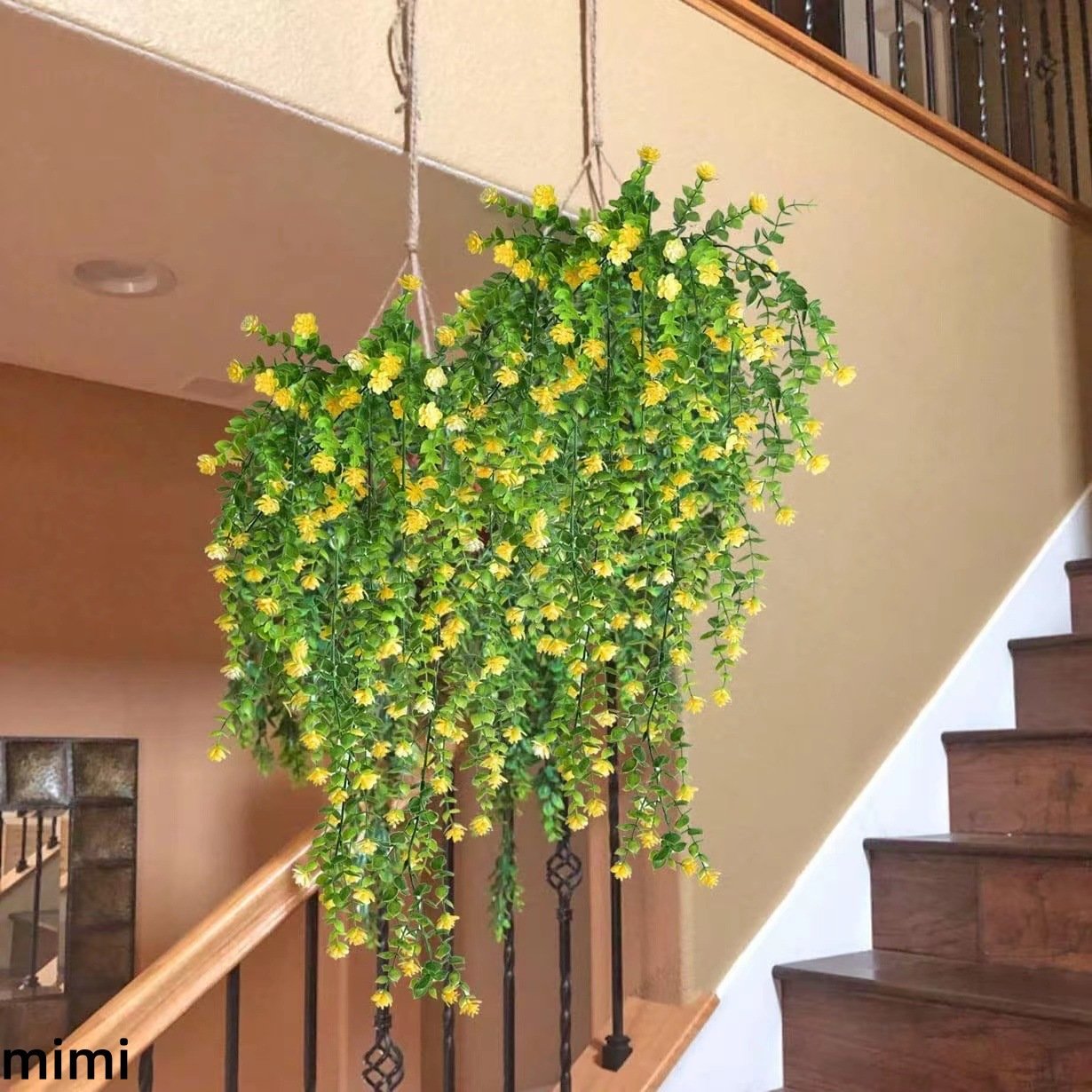 HomeArtificial WickerDirect from Manufacturer Realistic Eucalyptus Camellia Hanging Basket Wall-Mounted Plastic Artificial Flower Vine Cross-Border Outdoor Green Plant Decor
